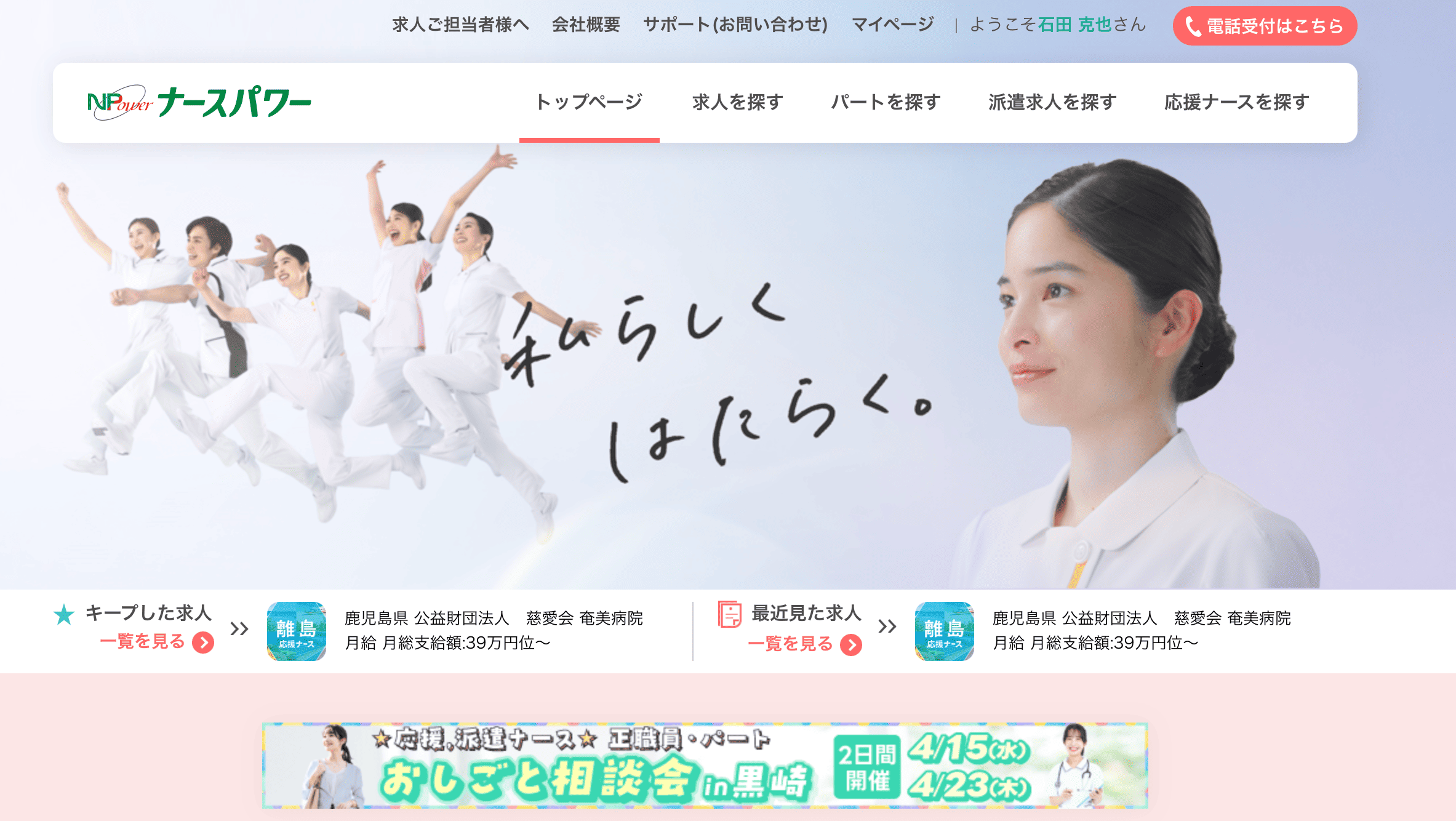 テレビCMでもおなじみの、応援ナースのパイオニアです。