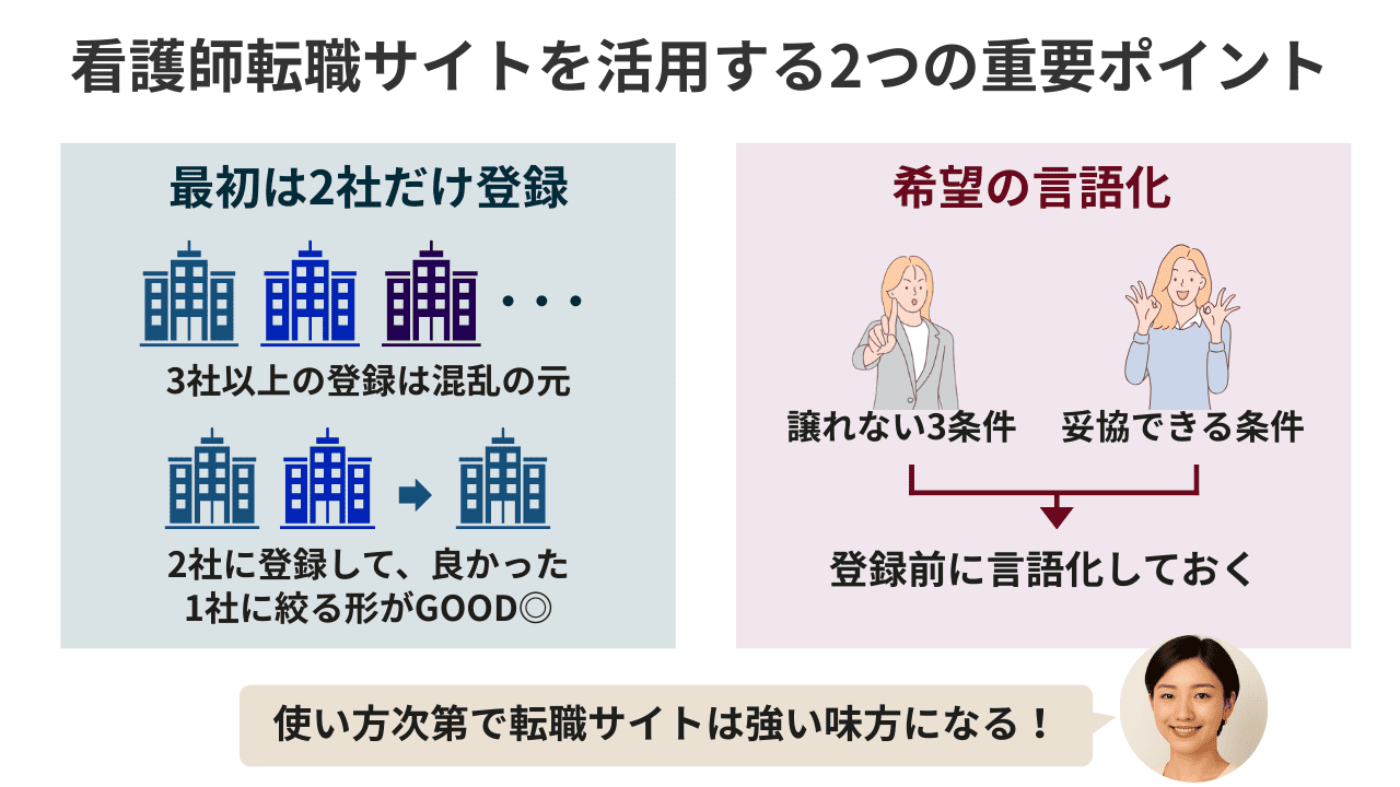 対策:最初は2社だけ登録→1社に集約が最も効率的。【看護師を辞めたい時の最終ガイド】判断軸・ブラック見極め・面接台本