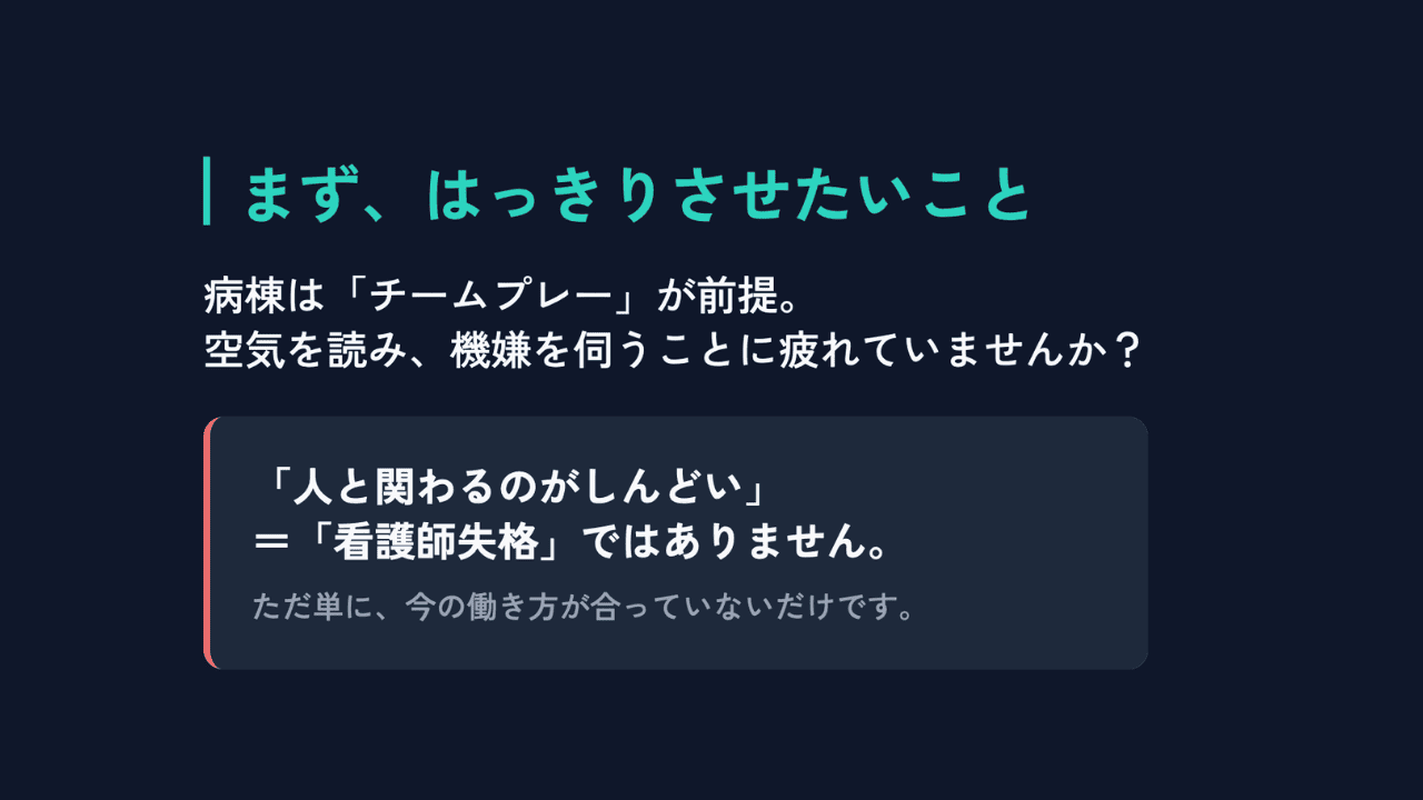 「人と関わるのがしんどい」=「看護師失格」ではありません。