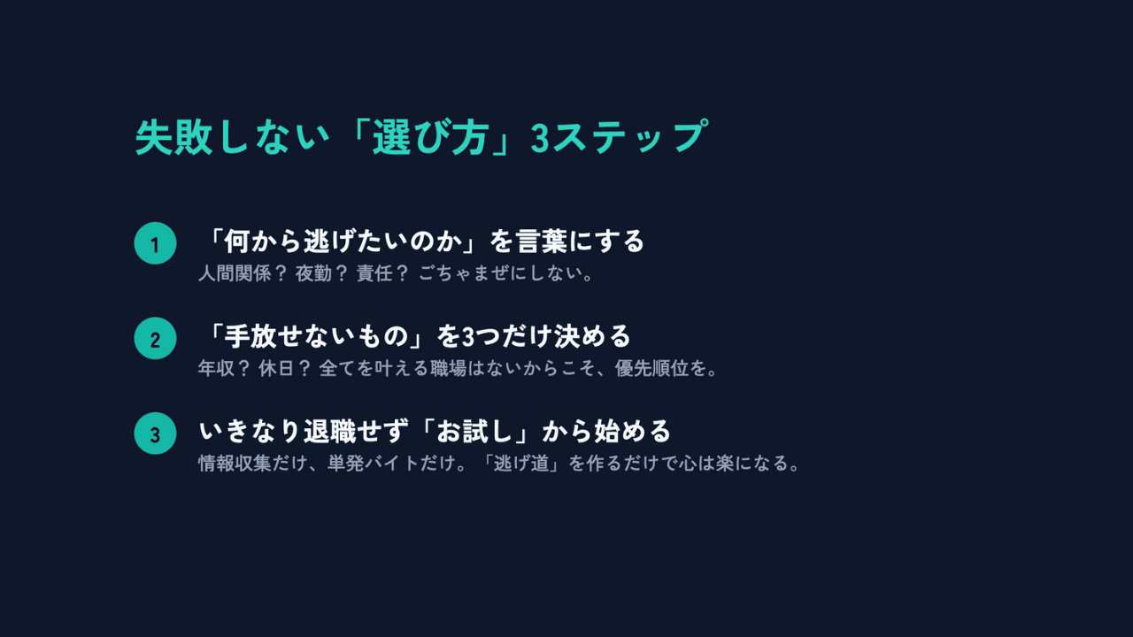 - いきなり退職して詰まないための、リスクを減らした動き方