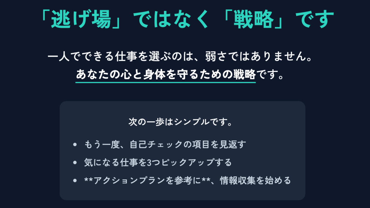 まとめ|「一人でできる仕事」を選ぶのは、弱さではなく戦略