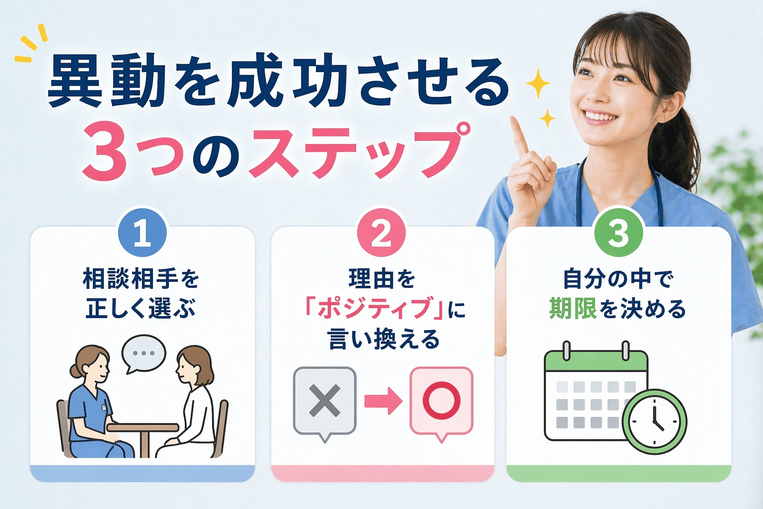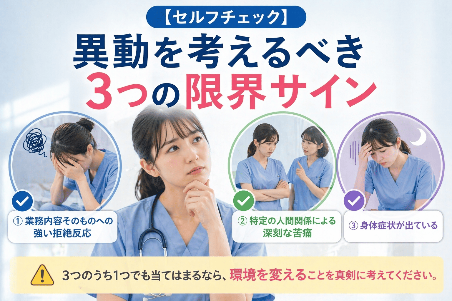 看護界では、1年目の早い段階であれば「教育体制が整った別の場所でやり直せる」価値があります。合わない場所で3年耐え続けるより、1年目で動いた方が長期的にはるかにプラスです。